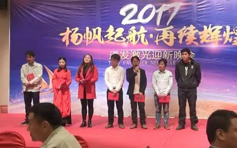 通發(fā)激光的飛躍離不開通發(fā)家人在各自崗位上的平凡付出,此次晚會開場首秀便是優(yōu)秀員工的頒獎,經(jīng)過對2016全年專業(yè)技術(shù)、綜合素質(zhì)的評估,7位分別在研發(fā)技術(shù)、非標(biāo)焊機(jī)生產(chǎn)、電源、標(biāo)準(zhǔn)焊機(jī)生產(chǎn)、跟單、財(cái)務(wù)、行政等崗位上辛勤耕耘,充滿正能量的家人脫穎而出。