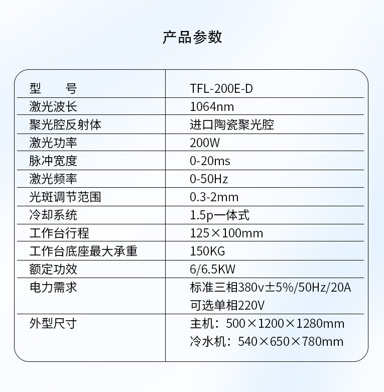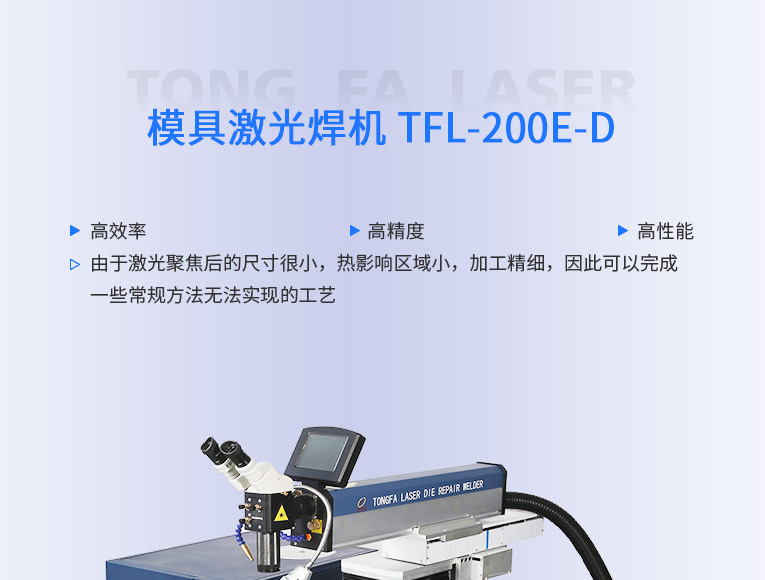 出口型模具激光焊機(jī)是通發(fā)激光公司專門為出口國(guó)外客戶使用而設(shè)計(jì)的系列機(jī)型TFL-200E-D,配置激光頭電動(dòng)升降,同時(shí)配置操縱桿無極調(diào)速控制XY橫向和縱向電動(dòng)移動(dòng)。適用于各類精密注塑模具、壓鑄模具等模具激光修補(bǔ)焊接;同時(shí)也適合鑄件沙孔激光修補(bǔ)、模具崩缺激光修復(fù)、過切加工等的激光修補(bǔ);各類金屬結(jié)構(gòu)件、金銀首飾的激光焊接加工。
